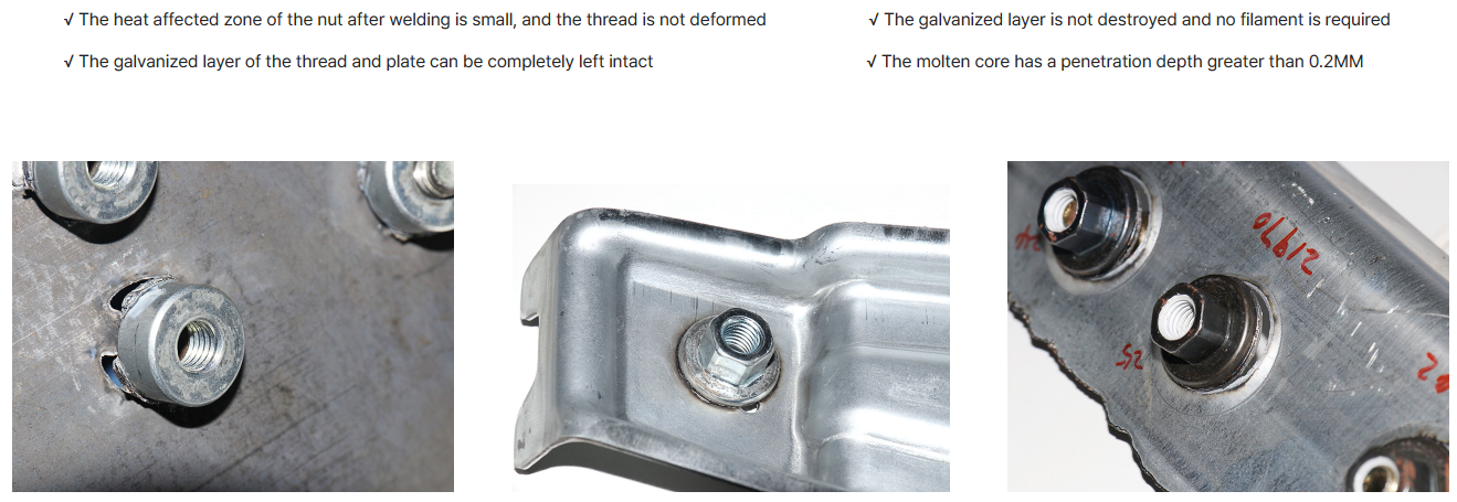 Projection welder for joining nuts and bolts to high strength and hot-stamping steel sheets